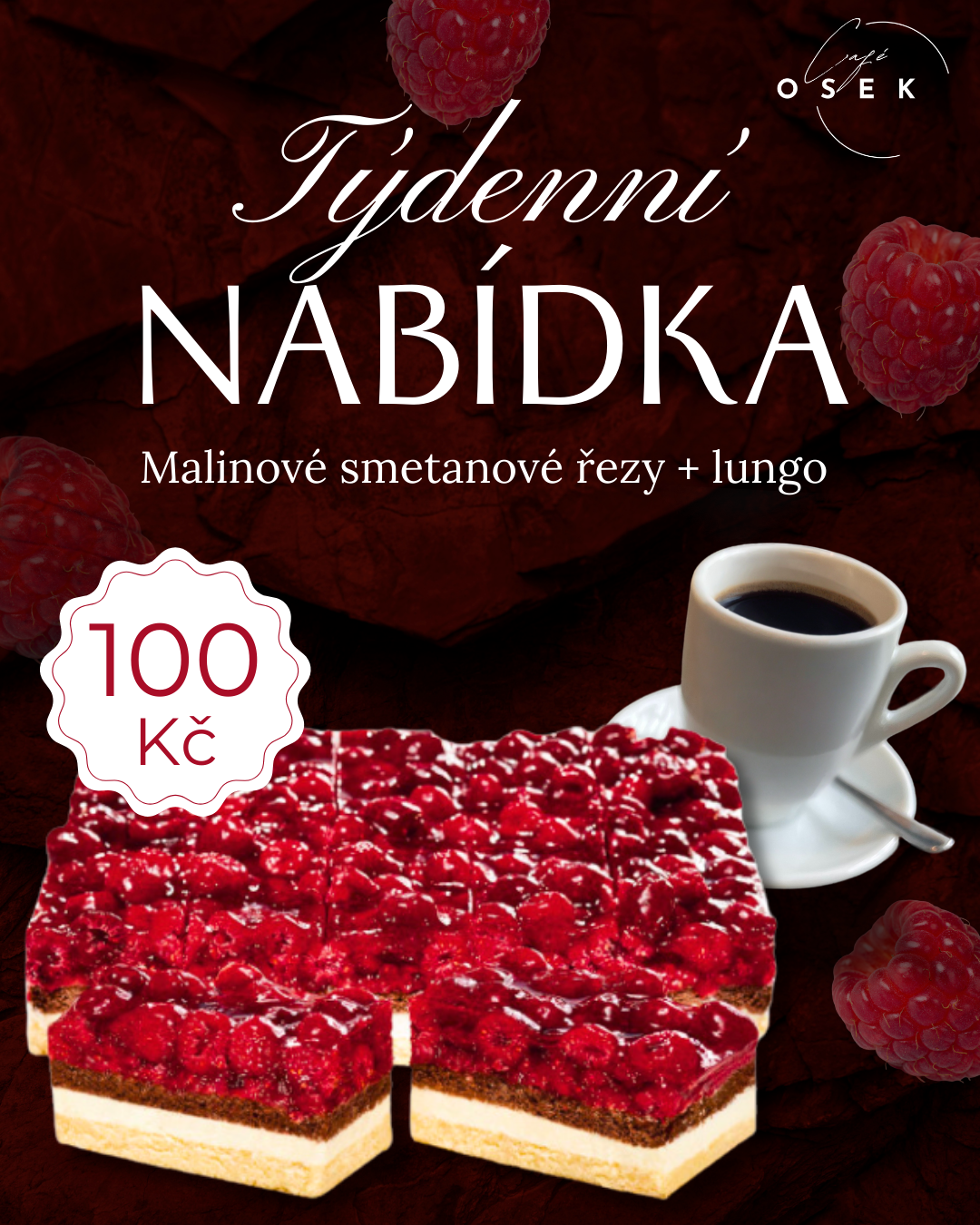 Malinové smetanové řezy + lungo za 100,-